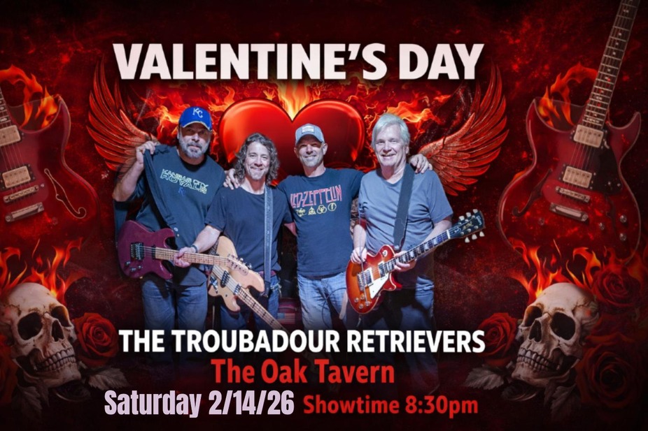 Saturday, February 14th, we’re turning The Oak Tavern into the coolest rock-n-roll hangout in Oak Grove! The Troubadour Retrievers hit the stage at 8:30pm, bringing decades of KC music experience straight to our stage!