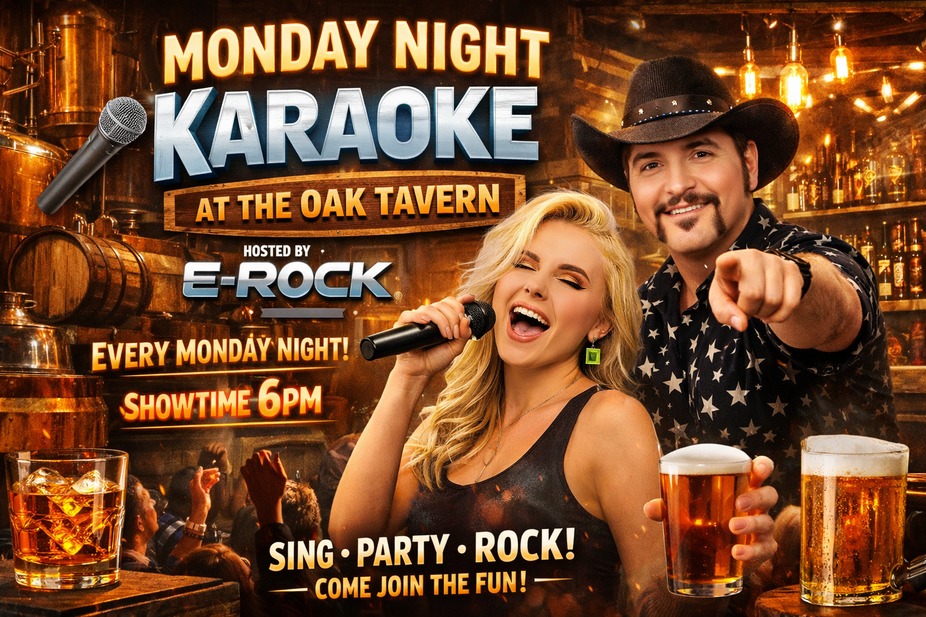Get ready to kick off your week the right way! It’s E-Rockin’ Karaoke EVERY Monday at The Oak Tavern! Hosted by the one and only E-Rock, we’re turning Monday into THE night to sing your heart out! 🎉