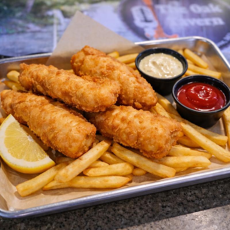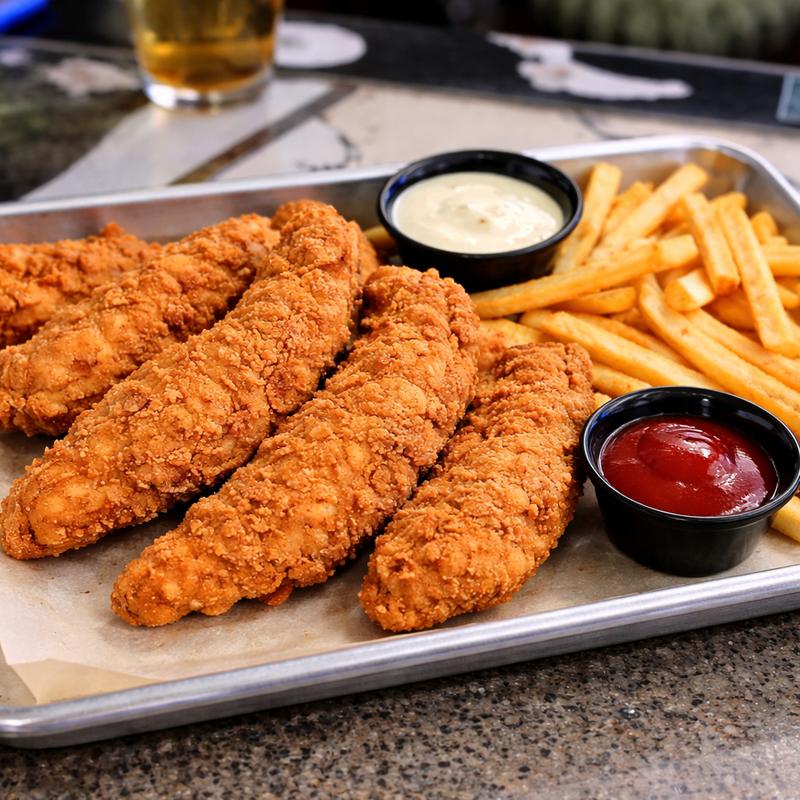 Fried chicken tenders with fries or tater tots (upgrade to onion rings for $1.00).